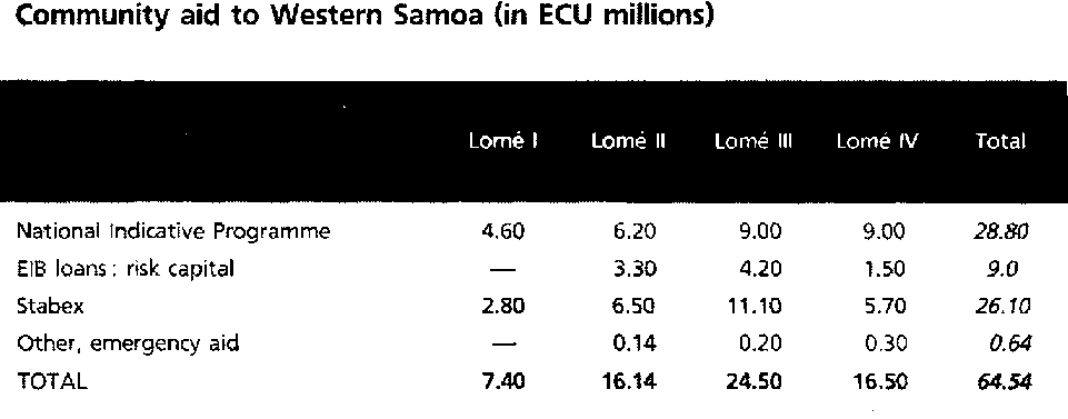 Pacific island nations have a reputation for idyllic scenery and rich cultural traditions. Western Samoa has both of these assets in abundance, but it also faces many development challenges. With a population of just 165 000, the country has a limited local market, and it is a very long way from potential overseas customers. It is also susceptible to destructive tropical storms. Despite these constraints, there have been some promising signs of economic progress in recent years.